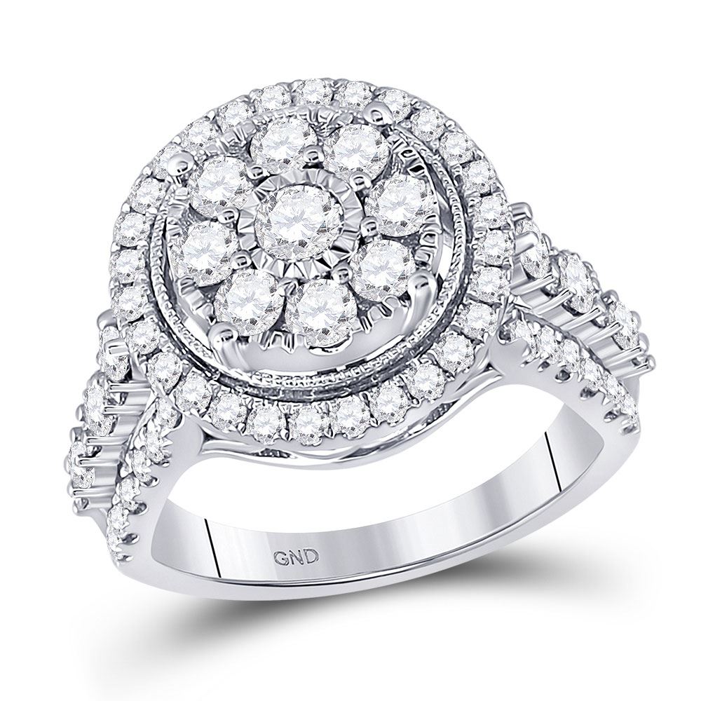 Round Diamond Flower Cluster Ring 1-3/4 Cttw 14KT White Gold