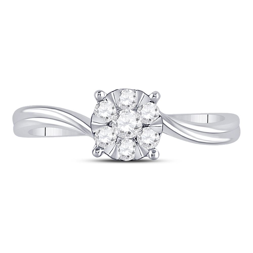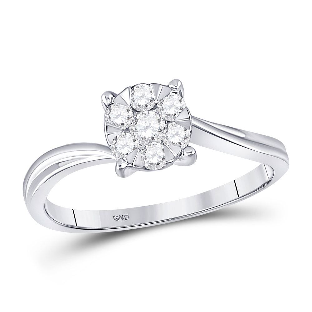Round Diamond Flower Cluster Ring 1/3 Cttw 10KT White Gold