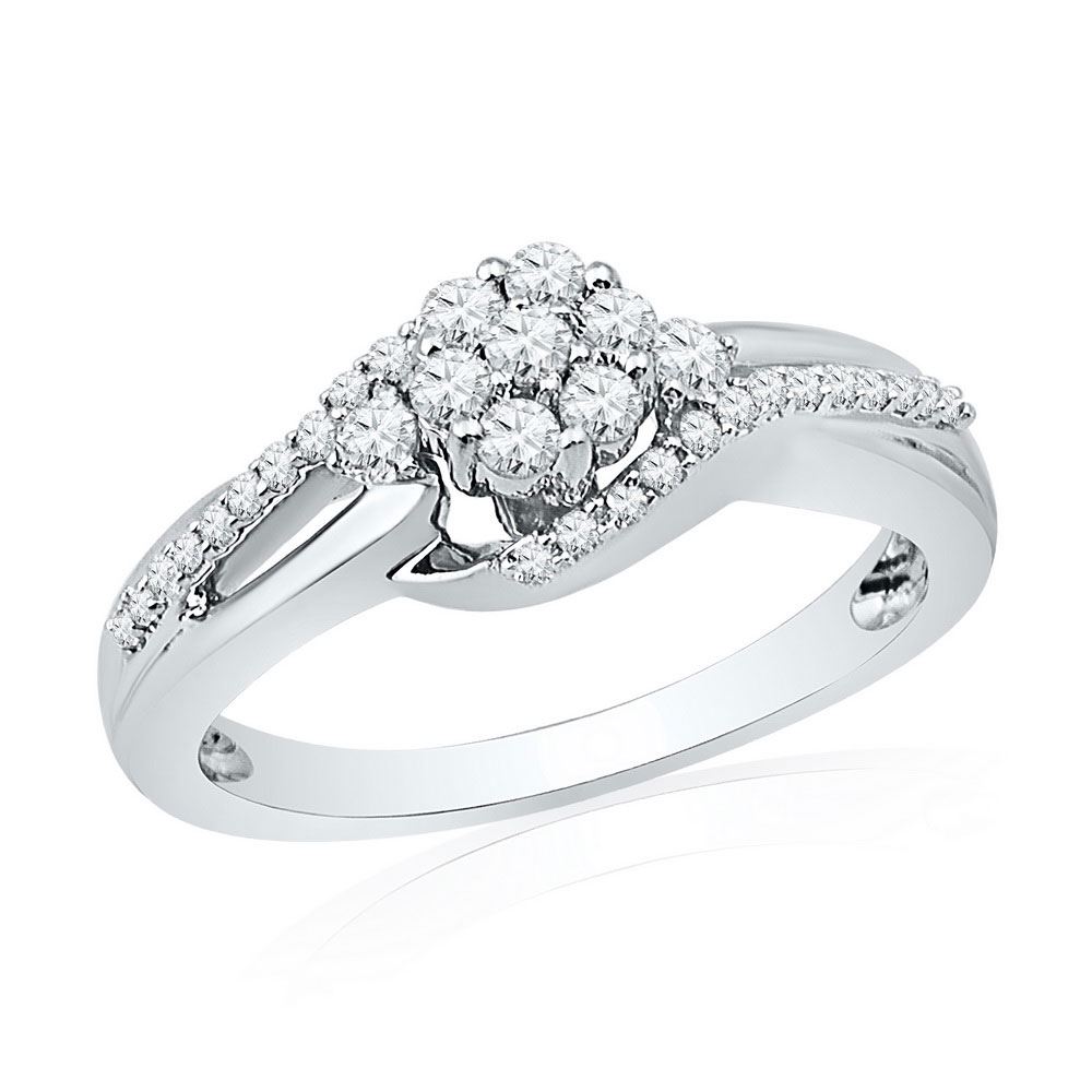 Round Diamond Flower Cluster Ring 1/3 Cttw 10KT White Gold