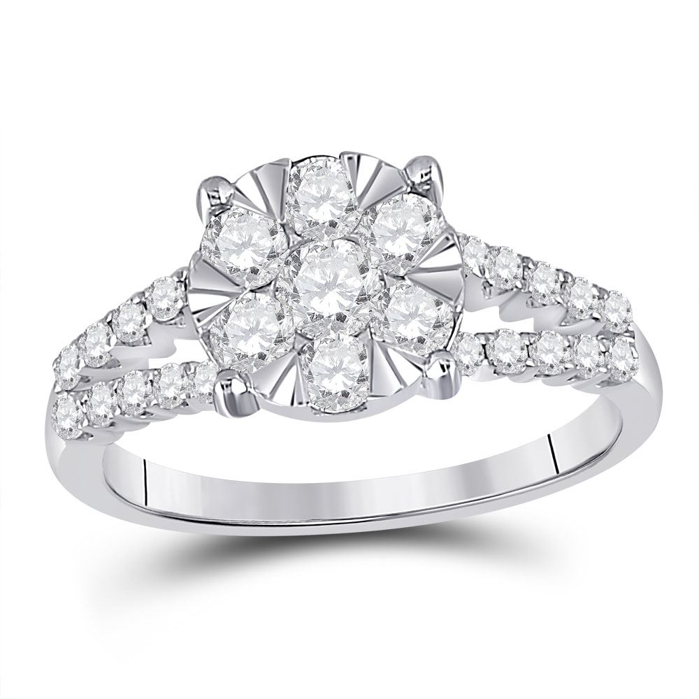 Round Diamond Flower Cluster Ring 1 Cttw 14KT White Gold