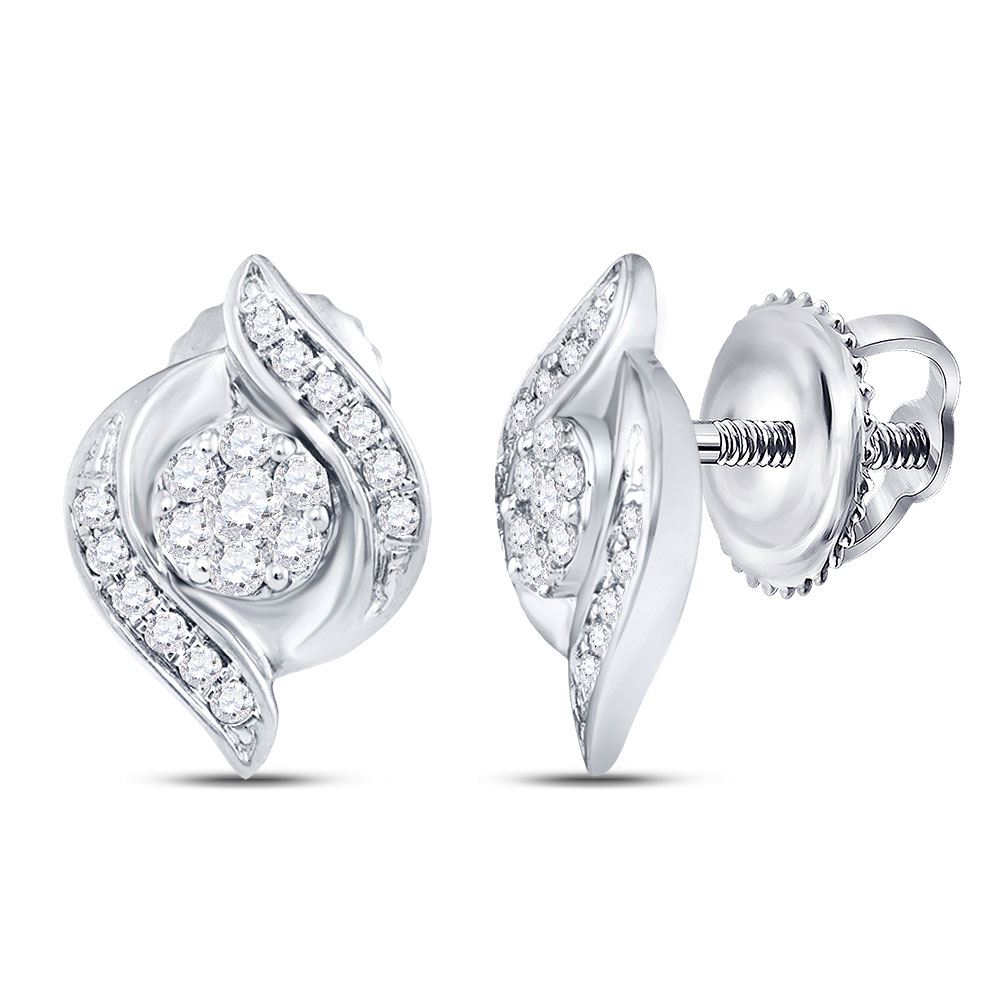 Round Diamond Flower Cluster Stud Earrings 1/4 Cttw 14KT White Gold