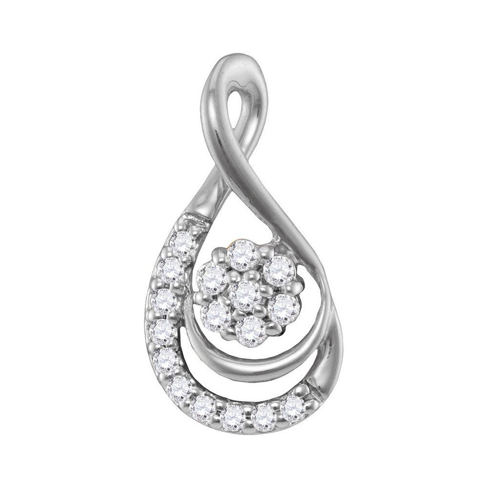Round Diamond Flower Cluster Teardrop Pendant 1/10 Cttw 10KT White Gold