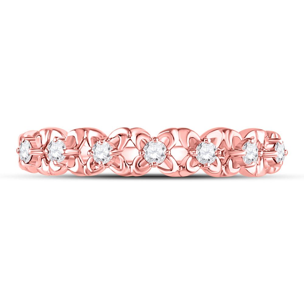 Round Diamond Flower Petal Stackable Band Ring 1/6 Cttw 10KT Rose Gold