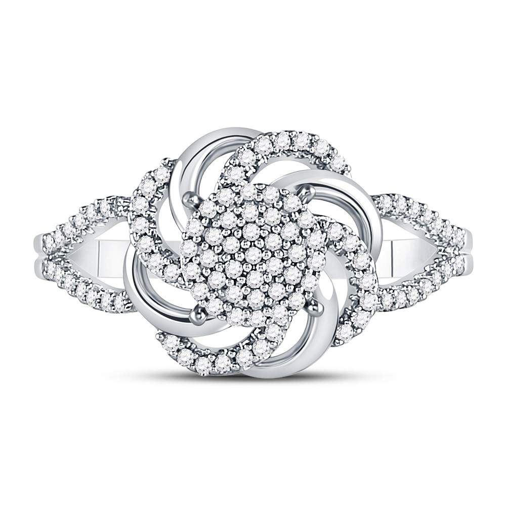 10kt White Gold Womens Round Diamond Flower Petals Cluster Ring 1/4 Cttw.