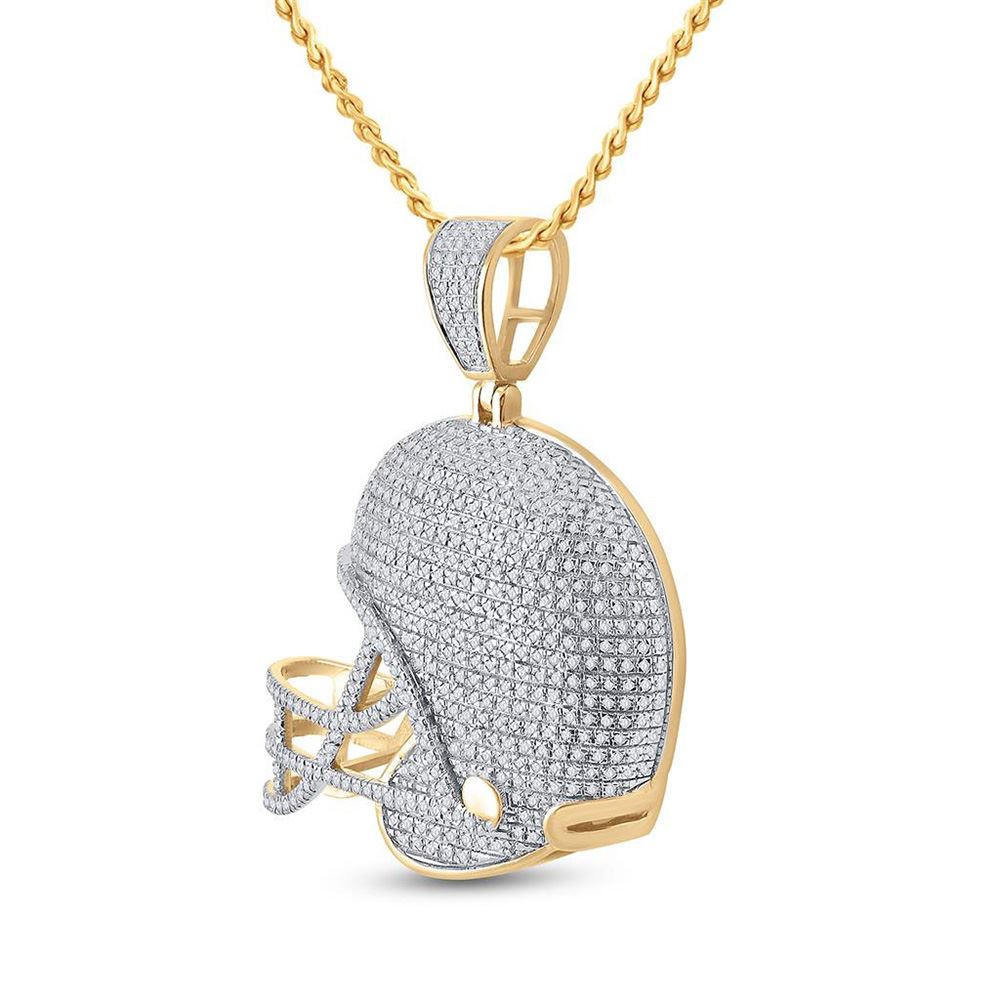 10kt Yellow Gold Mens Round Diamond Football Helmet Charm Pendant 3/4 Cttw.