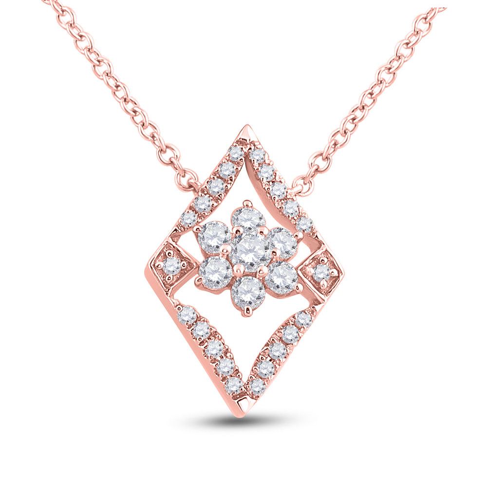 14kt Rose Gold Womens Round Diamond Geometric Cluster Necklace 1/3 Cttw.