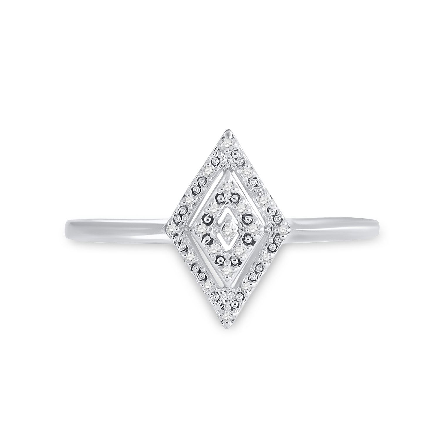 Round Diamond Geometric Fashion Ring 1/20 Cttw 10KT White Gold
