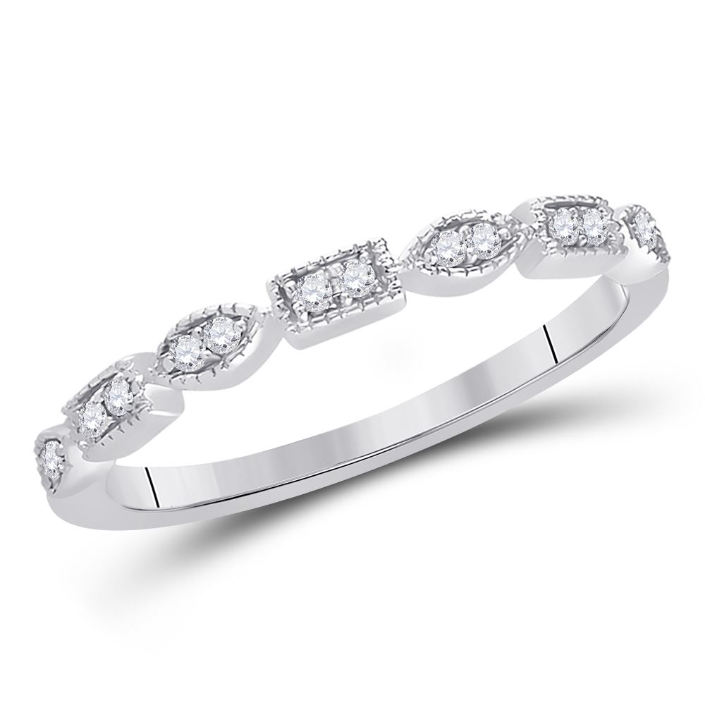 14kt White Gold Womens Round Diamond Geometric Stackable Band Ring 1/10 Cttw.