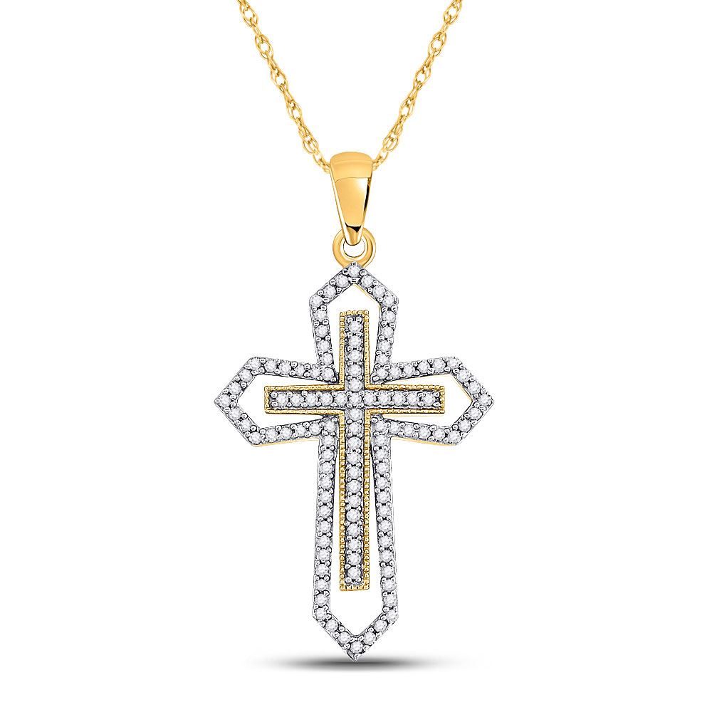 10kt Yellow Gold Womens Round Diamond Gothic Cross Pendant 1/2 Cttw.