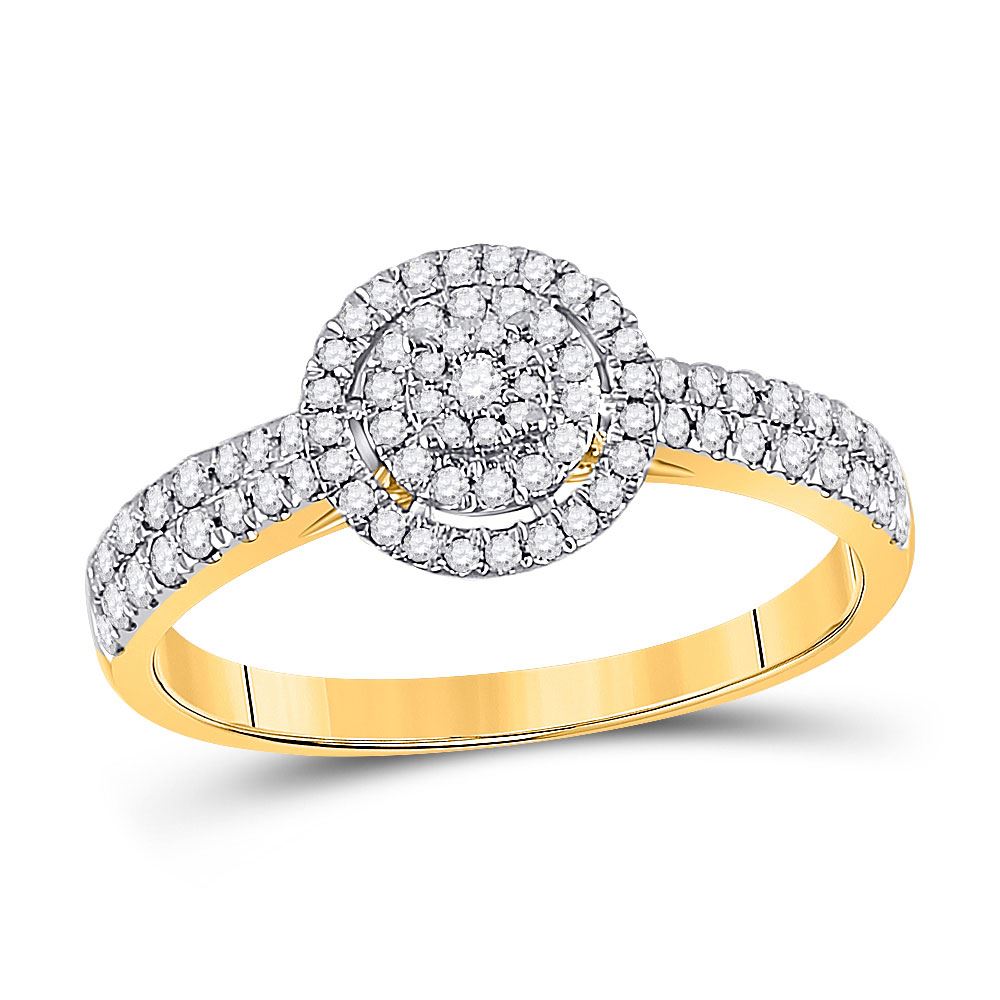 10kt Yellow Gold Womens Round Diamond Halo Cluster Ring 3/8 Cttw.