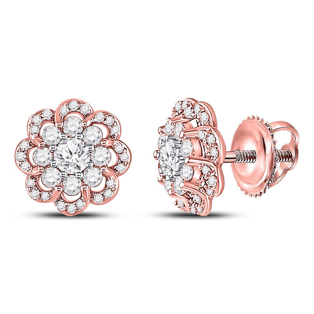 10kt Two-tone Gold Womens Round Diamond Halo Earrings 1/2 Cttw.
