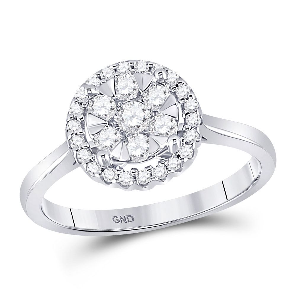 Round Diamond Halo Flower Cluster Ring 1/2 Cttw 10KT White Gold