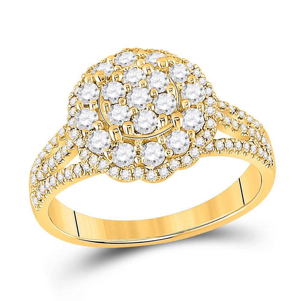 Round Diamond Halo Flower Cluster Ring 7/8 Cttw 14KT Yellow Gold