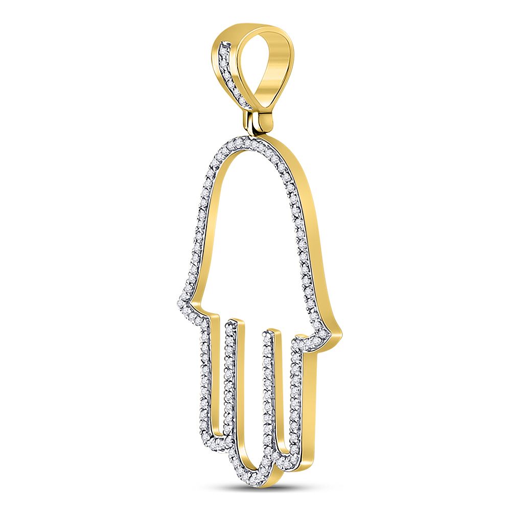 10kt Yellow Gold Mens Round Diamond Hamsa Fatima Hand Charm Pendant 1/3 Cttw.