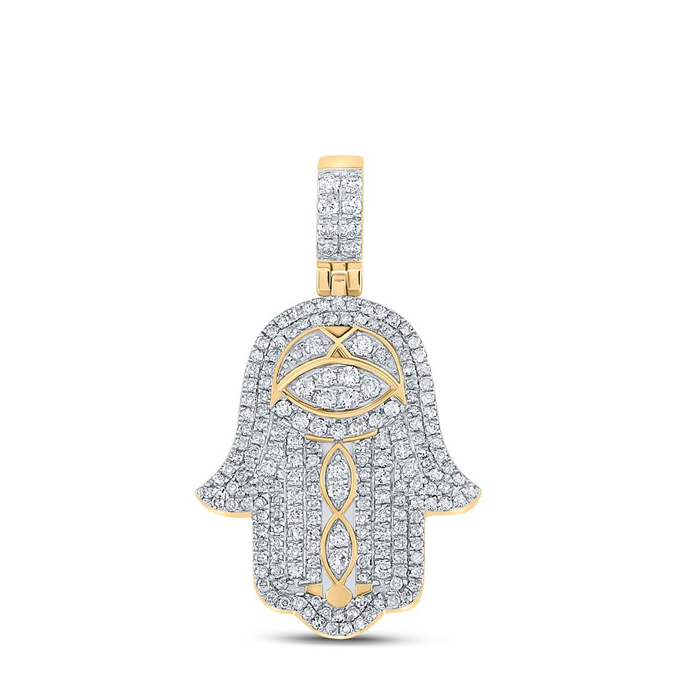 10kt Yellow Gold Mens Round Diamond Hamsa Hand Charm Pendant 1-1/2 Cttw.