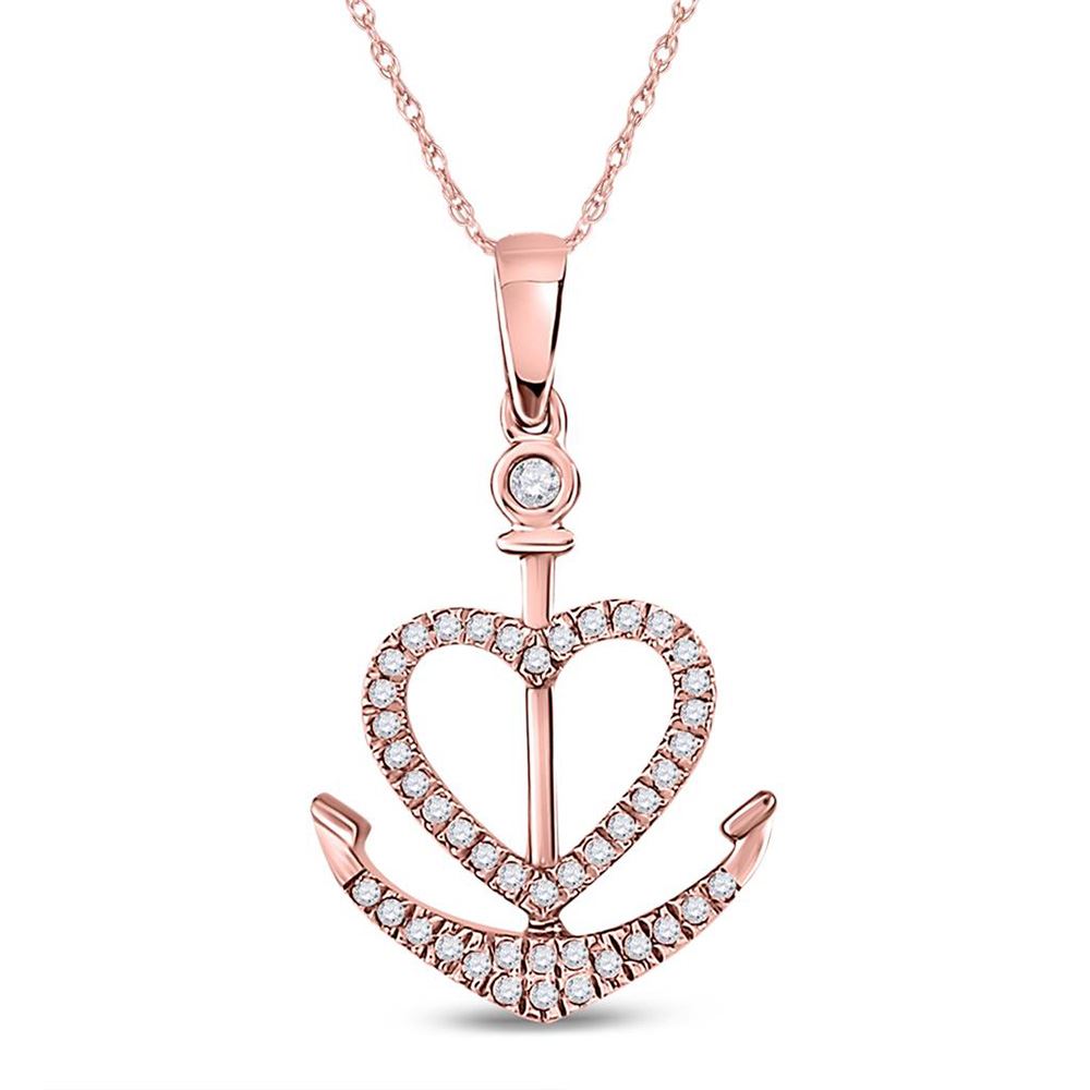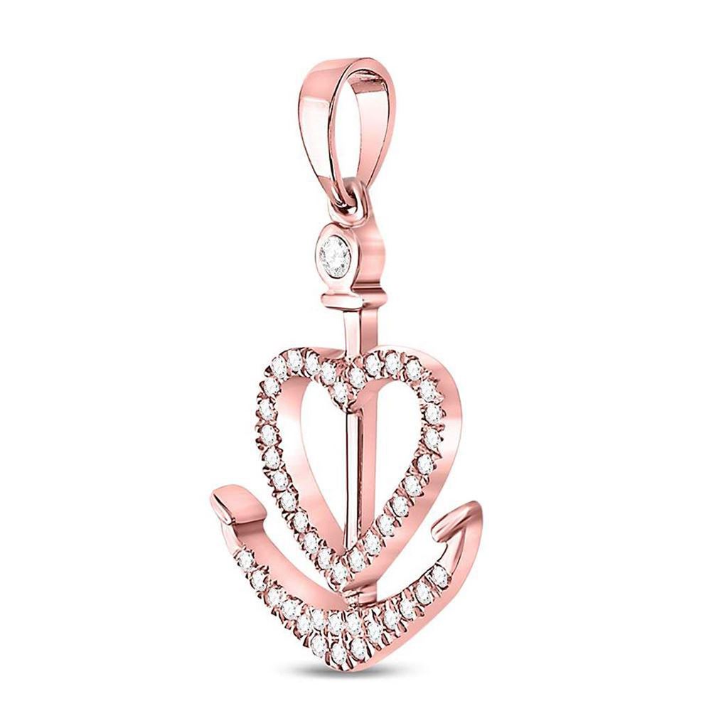 Round Diamond Heart Anchor Pendant 1/8 Cttw 14KT Rose Gold