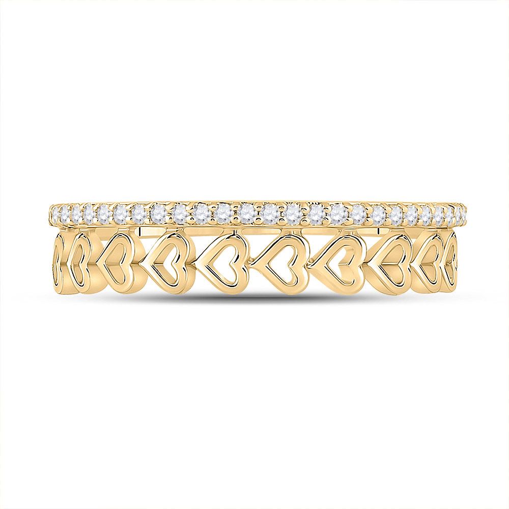 10kt Yellow Gold Womens Round Diamond Heart Band Ring 1/6 Cttw.