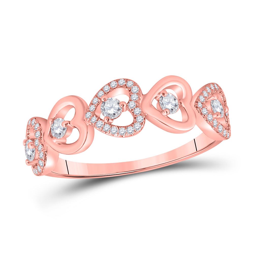 10kt Rose Gold Womens Round Diamond Heart Band Ring 3/8 Cttw.