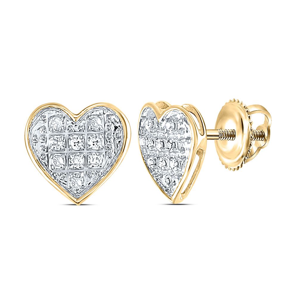 10kt Yellow Gold Womens Round Diamond Heart Earrings 1/20 Cttw.