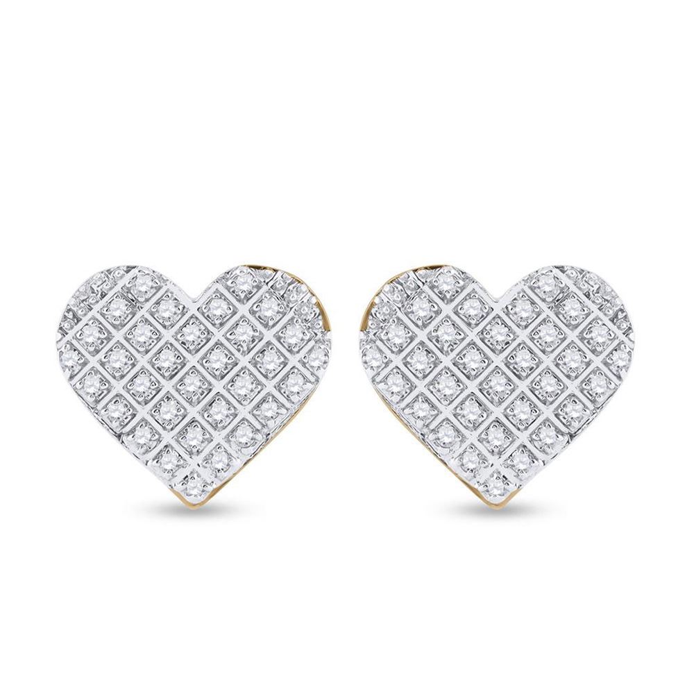 10kt Yellow Gold Womens Round Diamond Heart Earrings 1/5 Cttw.