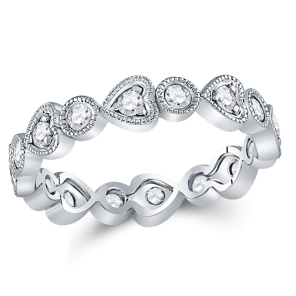 Round Diamond Heart Eternity Band Ring 3/8 Cttw 10KT White Gold