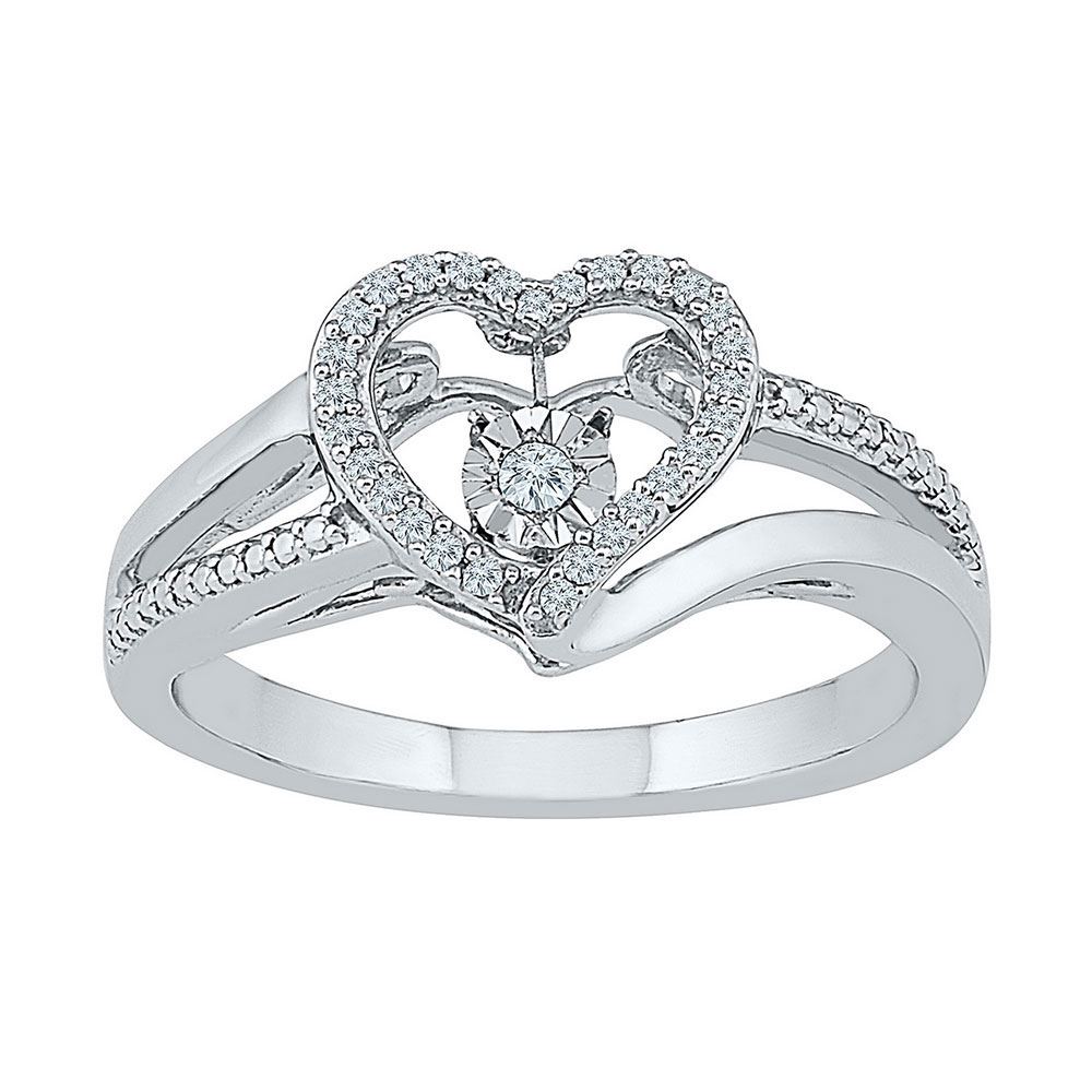 Round Diamond Heart Moving Twinkle Ring 1/10 Cttw 10KT White Gold