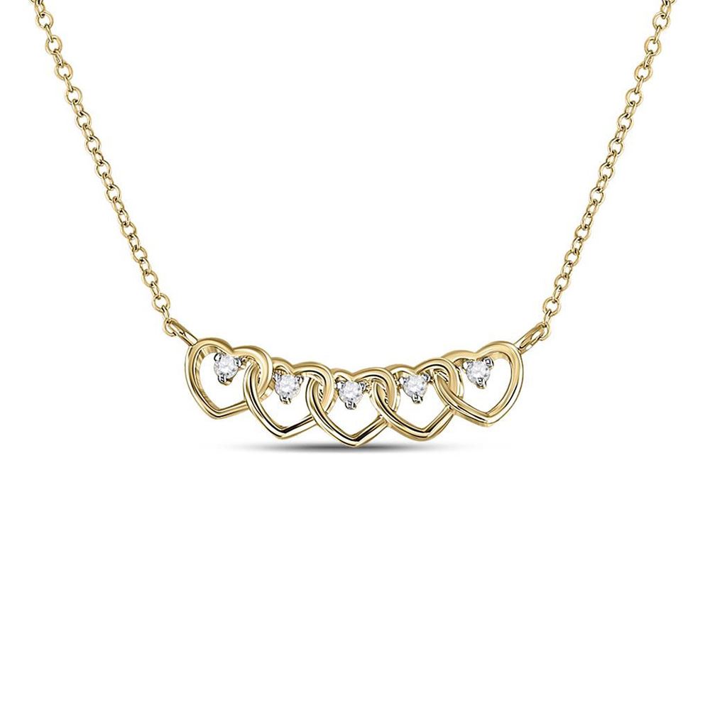14kt Yellow Gold Womens Round Diamond Heart Necklace 1/20 Cttw.