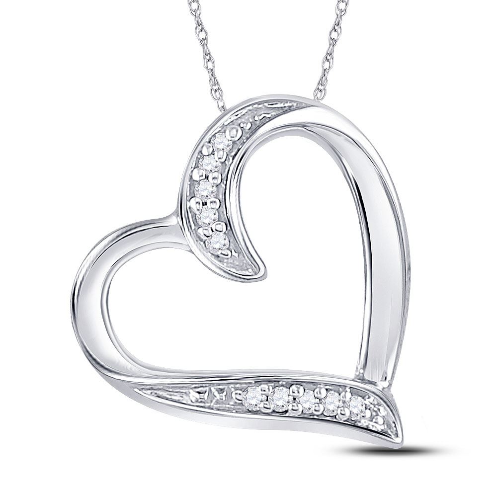 10kt White Gold Womens Round Diamond Heart Outline Pendant .03 Cttw.