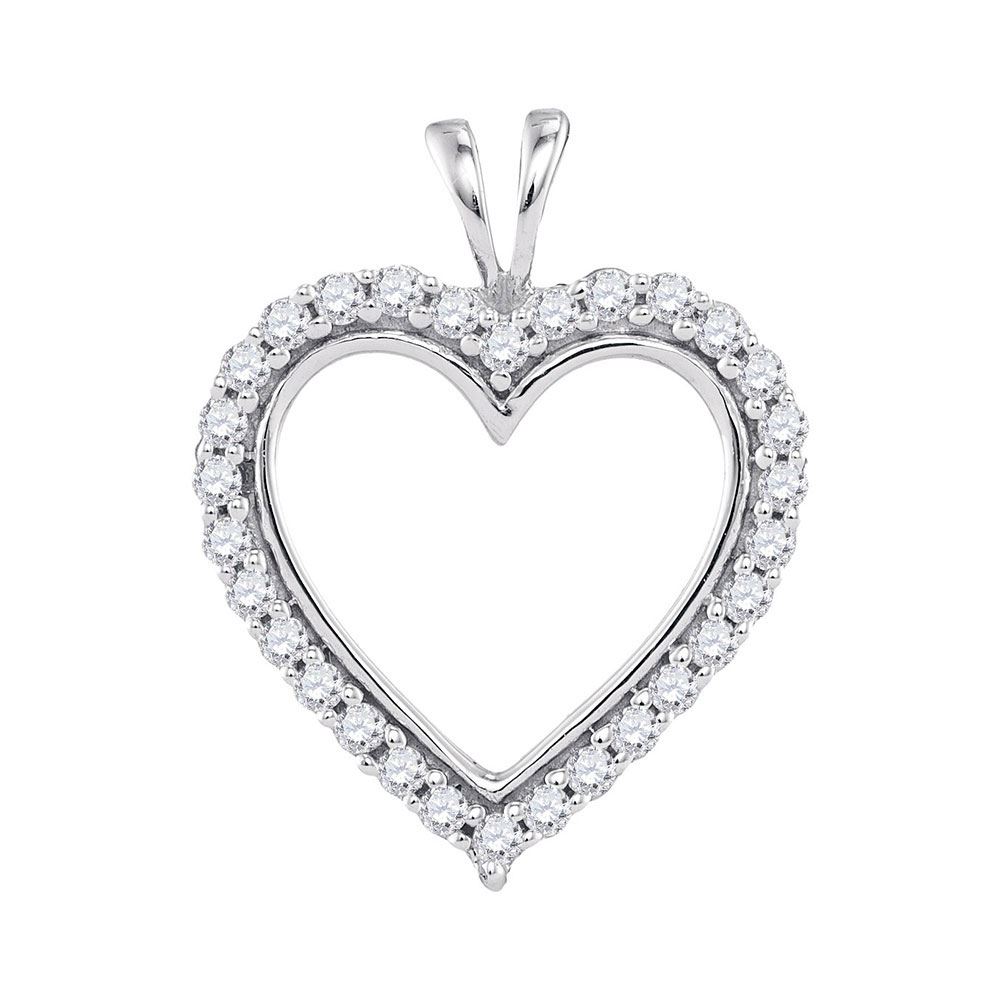 10kt White Gold Womens Round Diamond Heart Outline Pendant 1/4 Cttw.