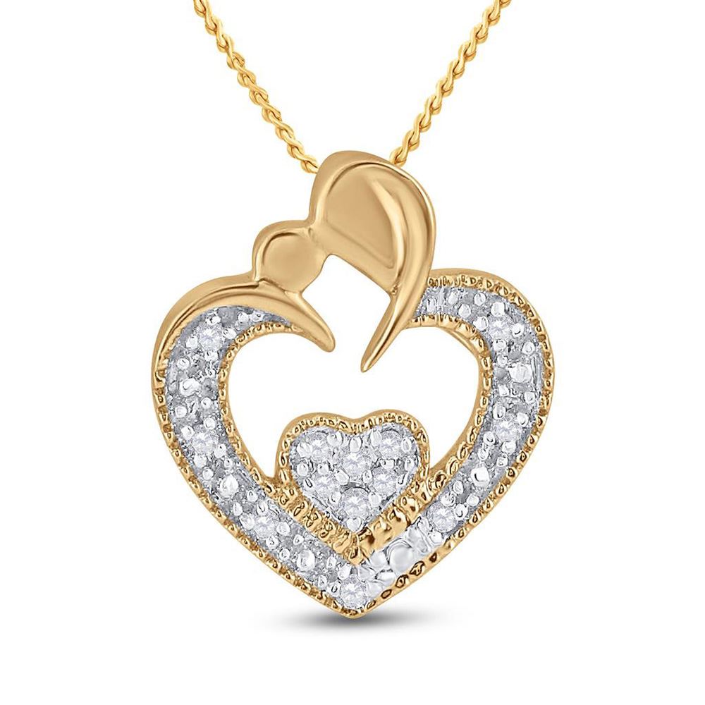 10kt Yellow Gold Womens Round Diamond Heart Pendant .03 Cttw.