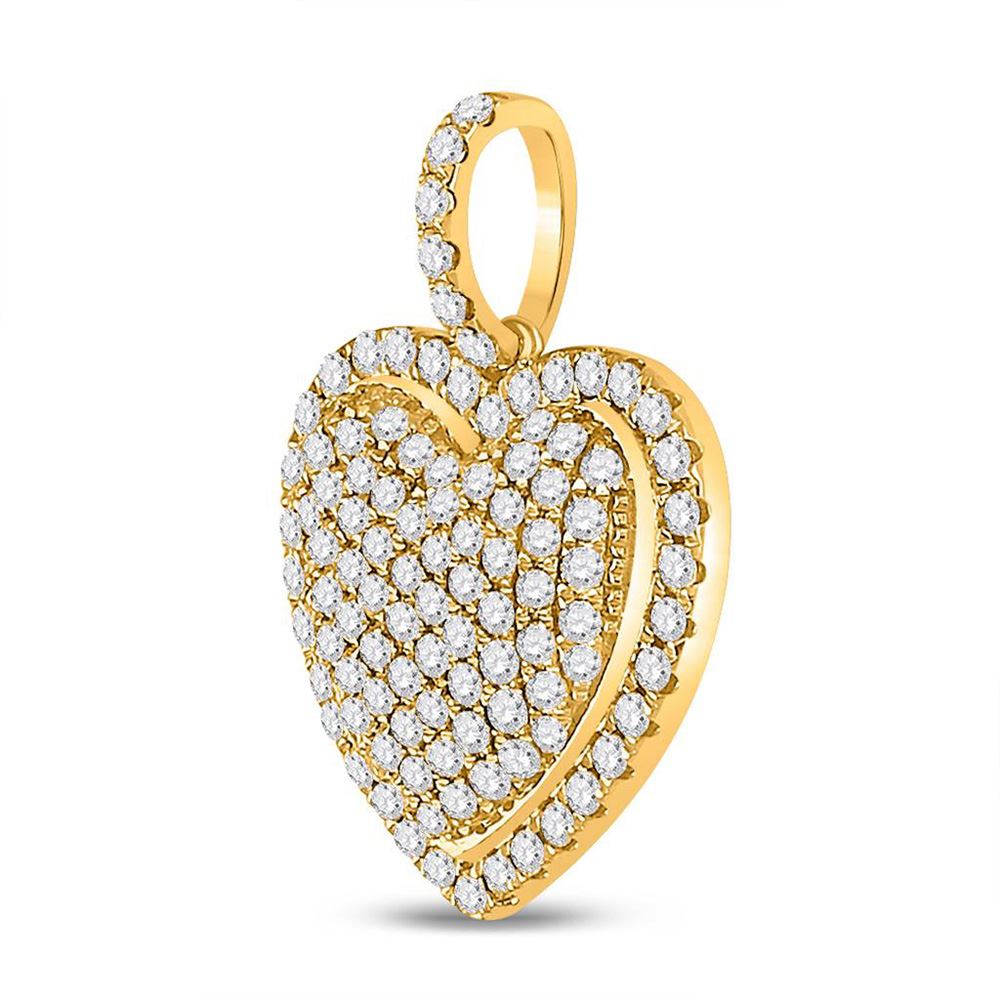 14kt Yellow Gold Womens Round Diamond Heart Pendant 1-1/4 Cttw.