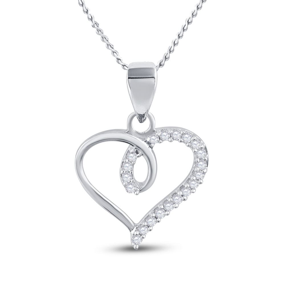 10kt White Gold Womens Round Diamond Heart Pendant 1/10 Cttw.