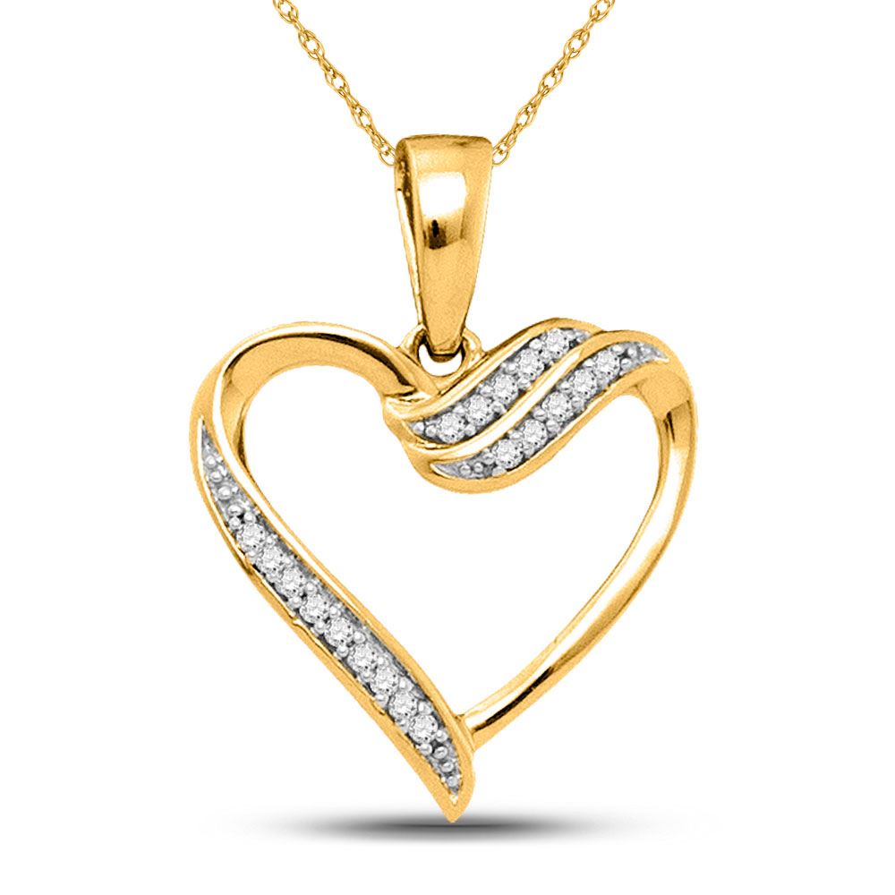 Round Diamond Heart Pendant 1/20 Cttw 10KT Yellow Gold