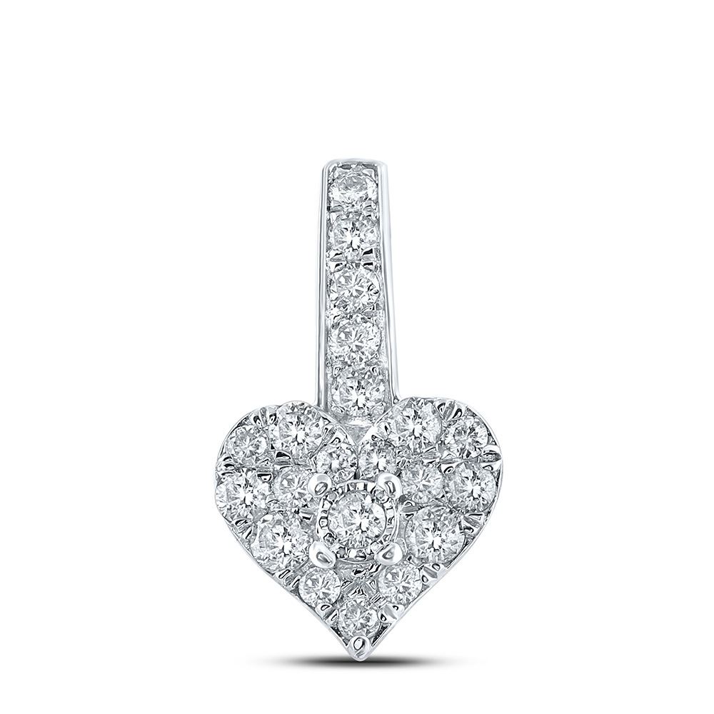 10kt White Gold Womens Round Diamond Heart Pendant 1/3 Cttw.