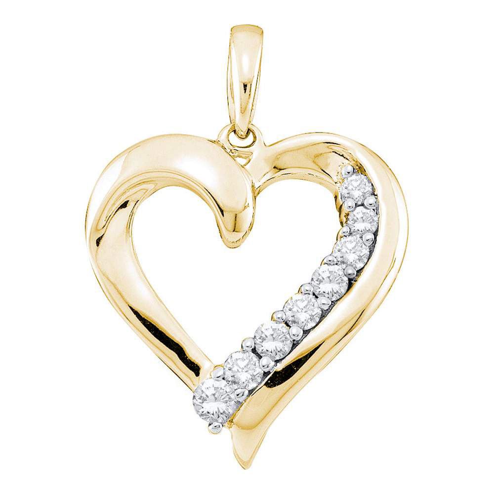14kt Yellow Gold Womens Round Diamond Heart Pendant 1/4 Cttw.