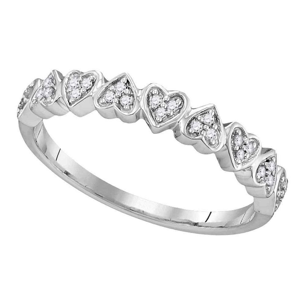 10kt White Gold Womens Round Diamond Heart Ring 1/10 Cttw.
