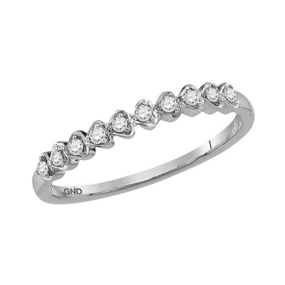 Round Diamond Heart Stackable Band Ring 1/10 Cttw 14KT White Gold