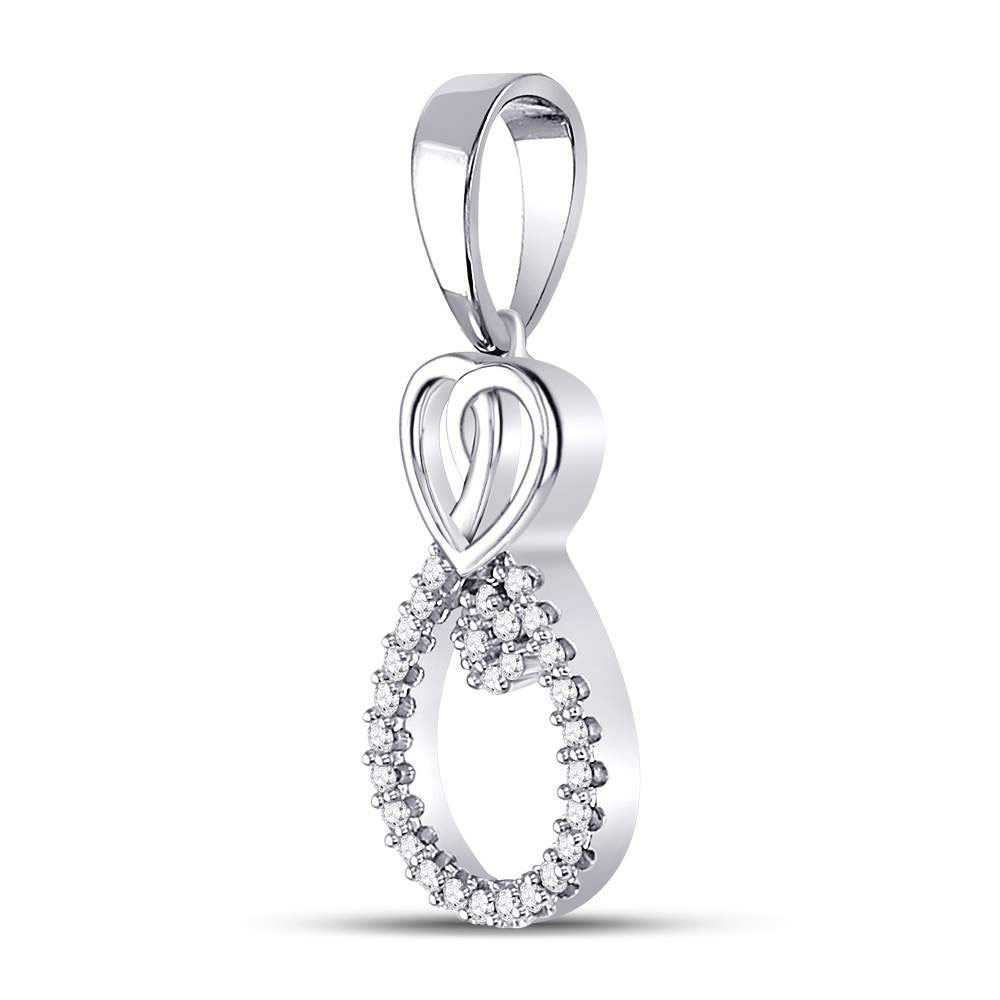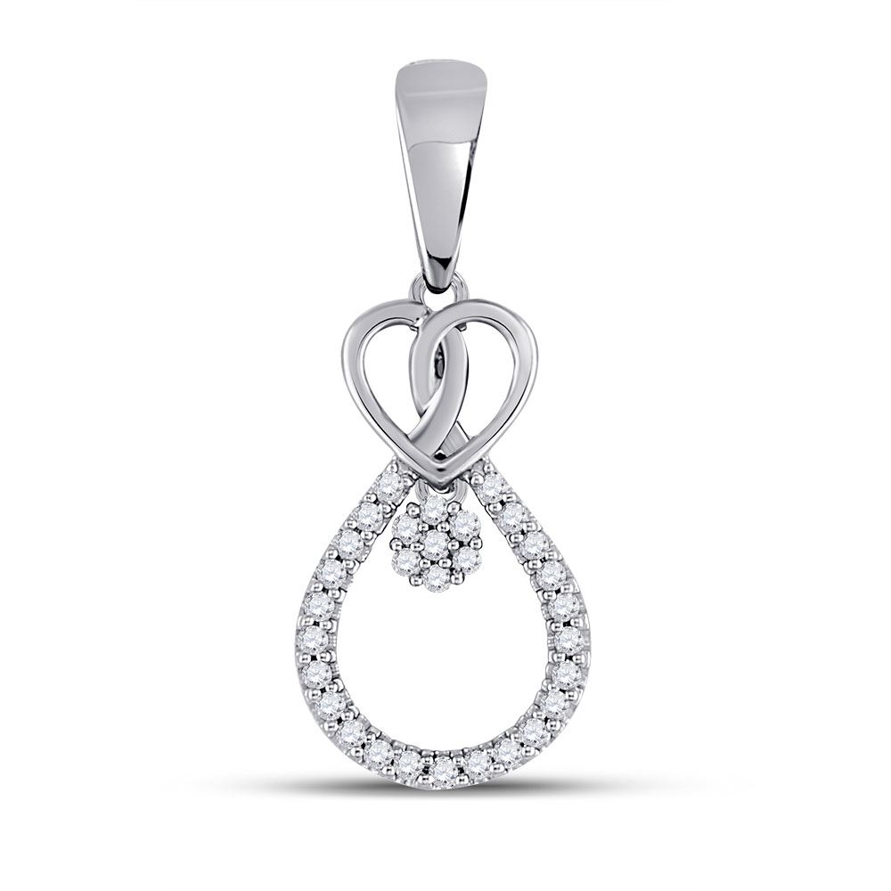10kt White Gold Womens Round Diamond Heart Teardrop Cluster Pendant 1/10 Cttw.