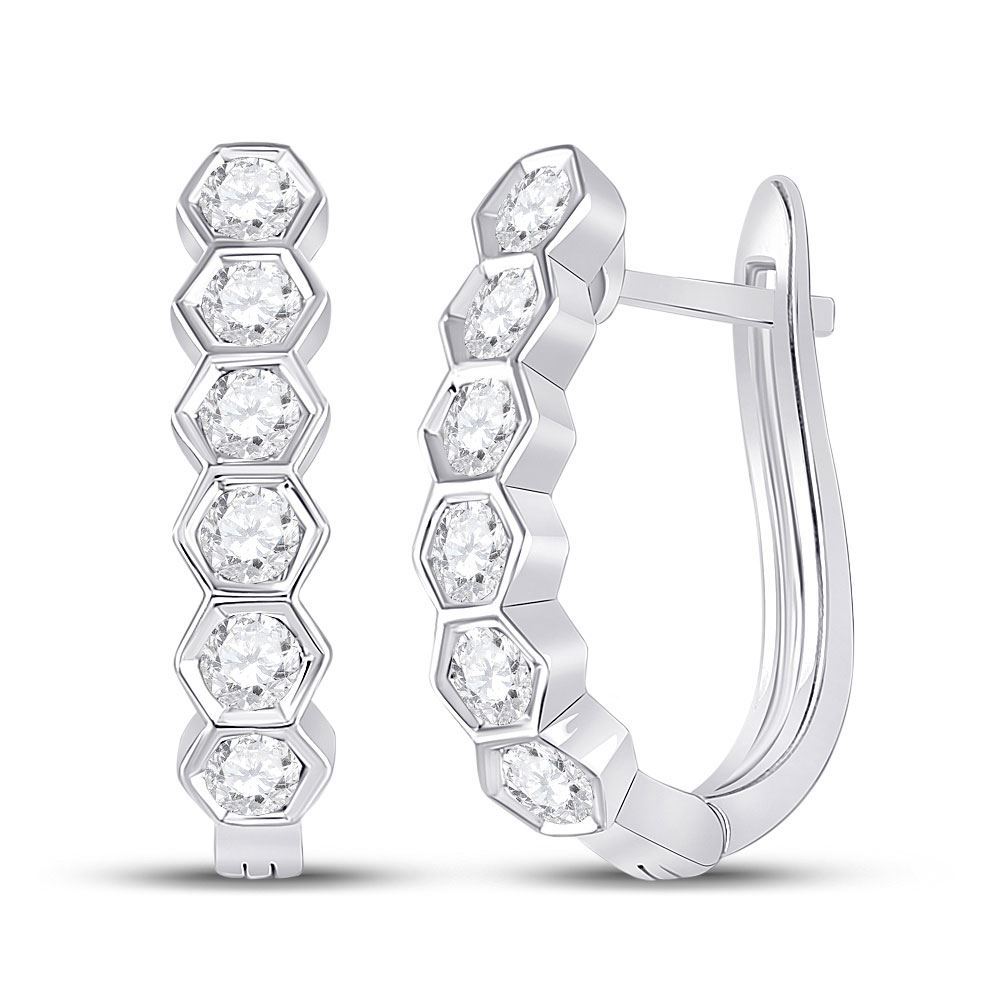 Round Diamond Hexagon Hoop Earrings 5/8 Cttw 14KT White Gold