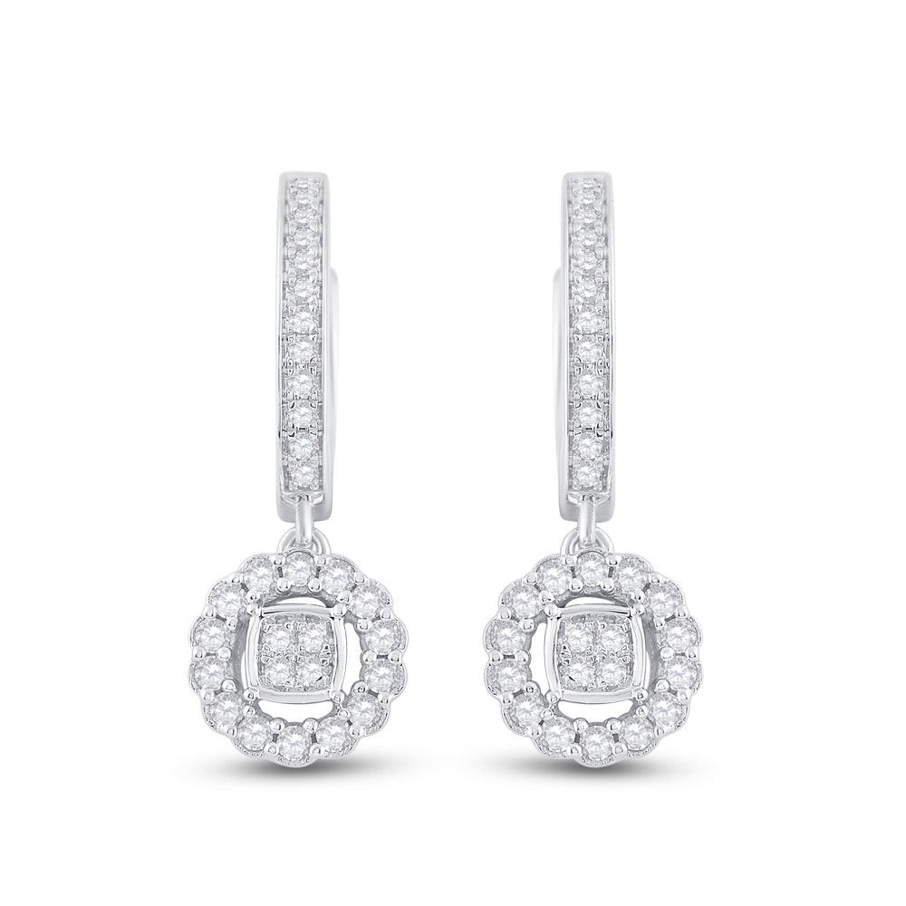 Round Diamond Hoop Circle Dangle Earrings 1/2 Cttw 14KT White Gold