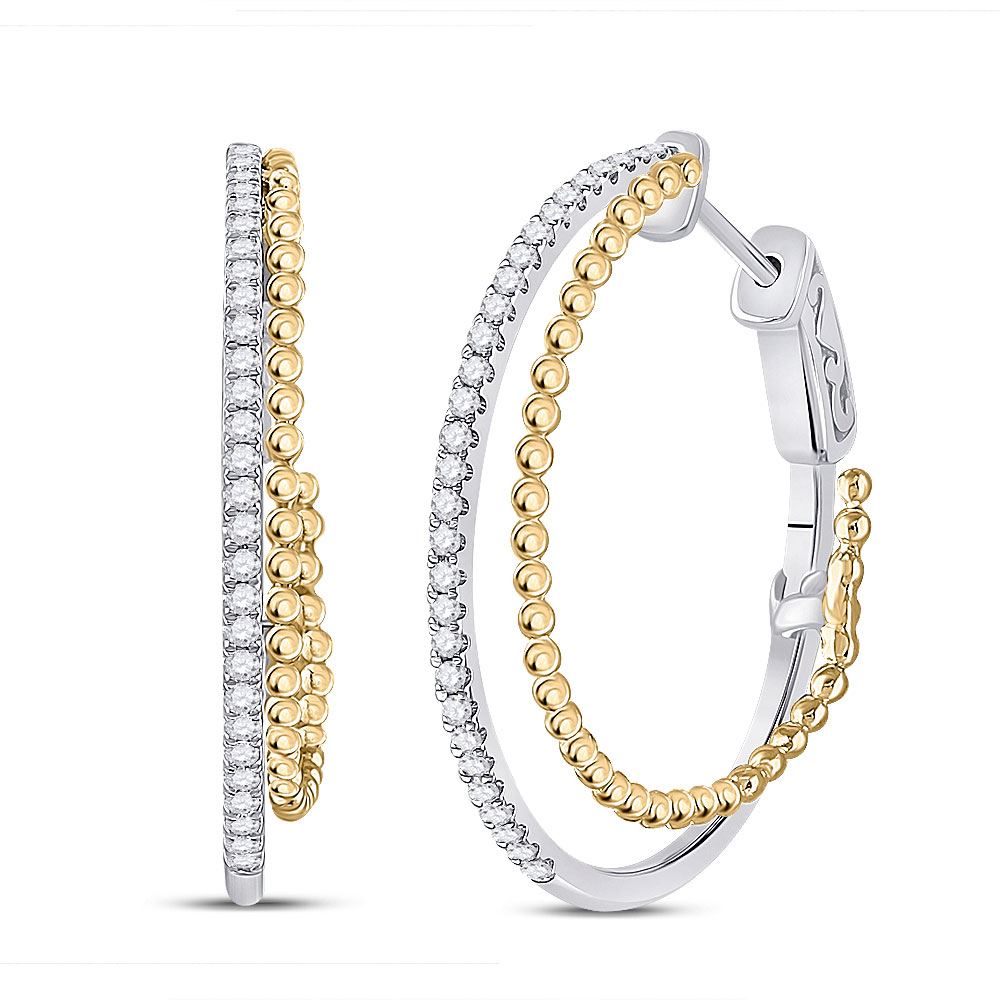 Round Diamond Hoop Earrings 1/2 Cttw 14KT Two-tone Gold