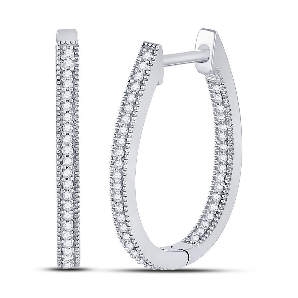 Round Diamond Hoop Earrings 1/4 Cttw 10KT White Gold