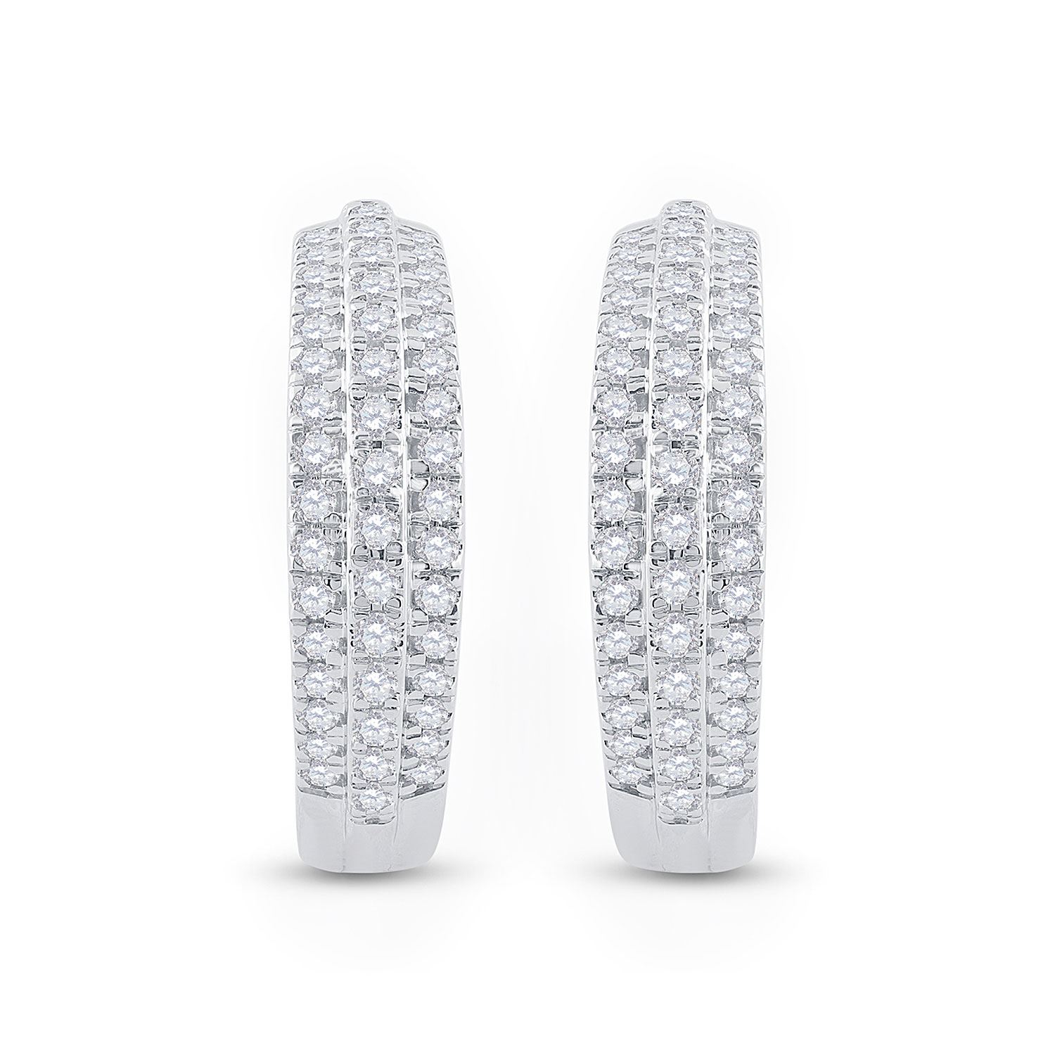 Round Diamond Hoop Earrings 1 Cttw 10KT White Gold