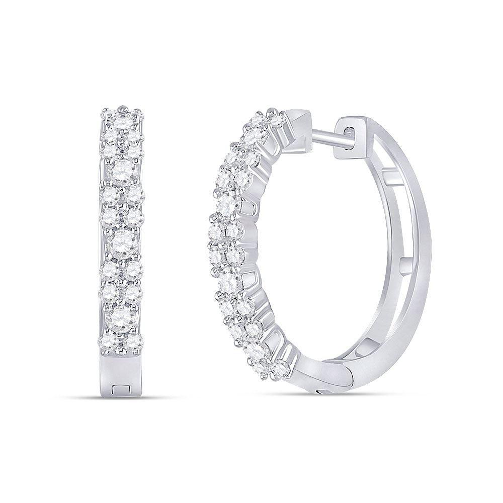 14kt White Gold Womens Round Diamond Hoop Earrings 3/4 Cttw.
