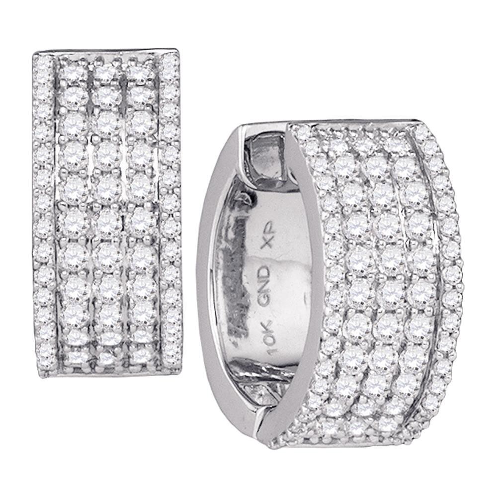 10kt White Gold Womens Round Diamond Huggie Earrings 1-5/8 Cttw.