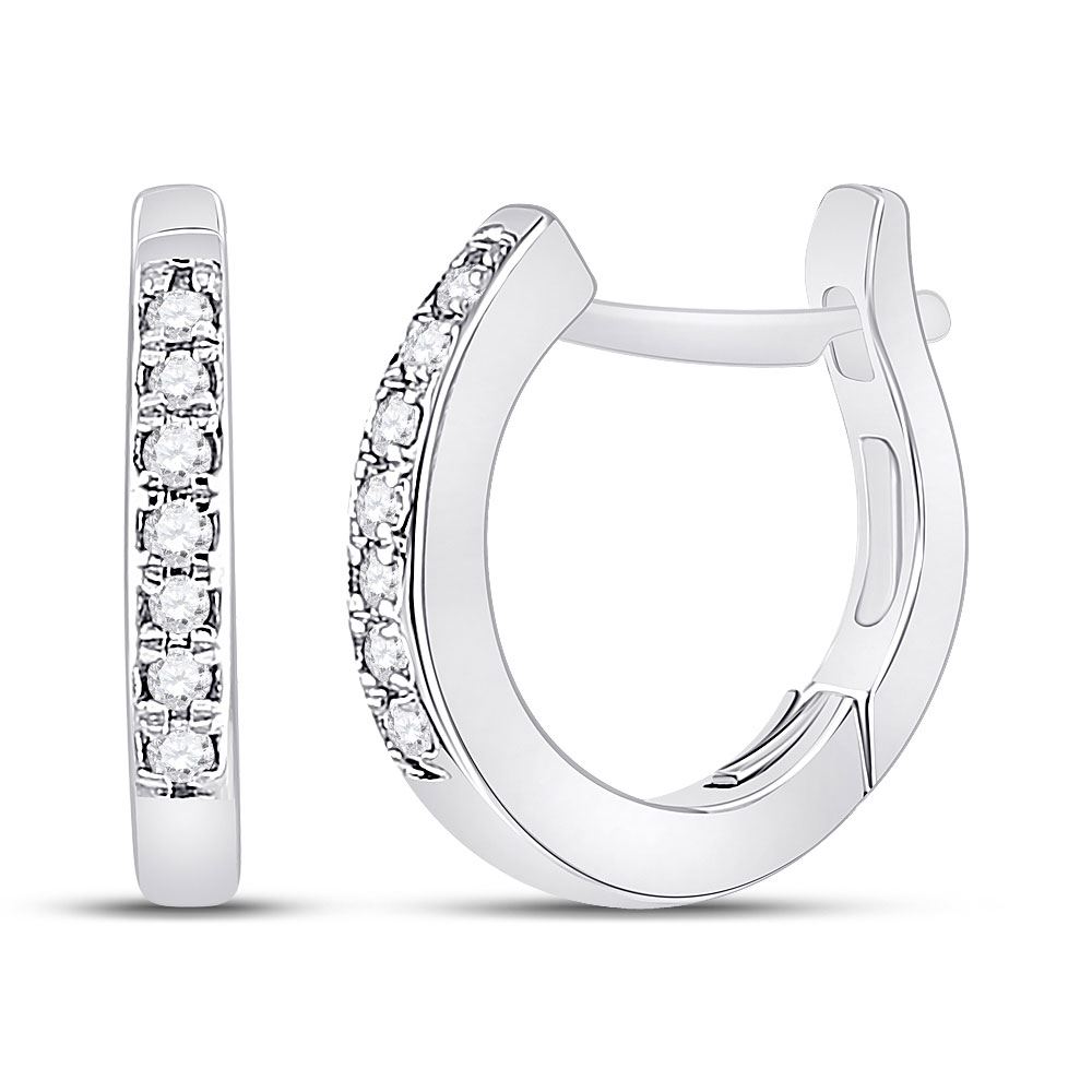Round Diamond Huggie Hoop Earrings 1/20 Cttw 10KT White Gold