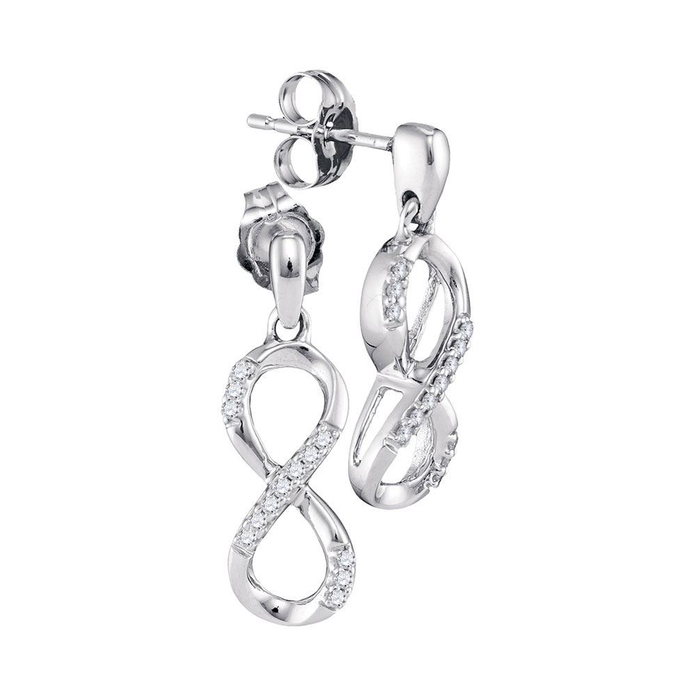 10k White Gold Womens Round Diamond Infinity Dangle Earrings 1/10 Cttw.