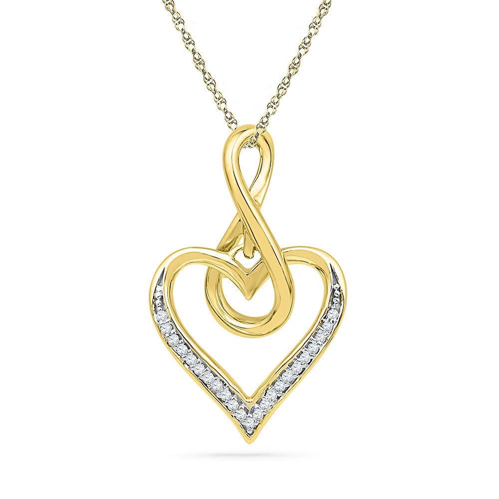 Round Diamond Infinity Heart Pendant 1/20 Cttw 10KT Yellow Gold
