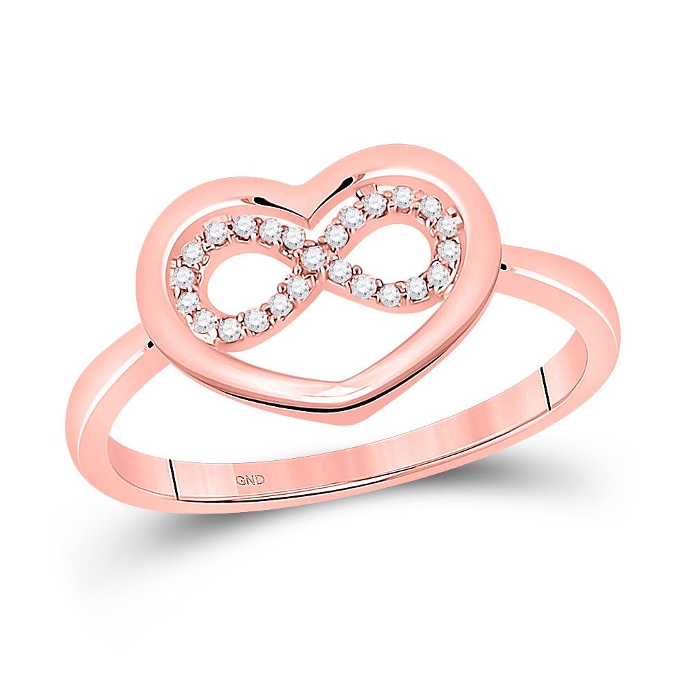 10kt Rose Gold Womens Round Diamond Infinity Heart Ring 1/20 Cttw.