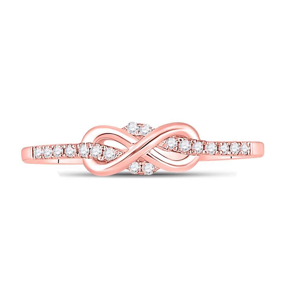 10kt Rose Gold Womens Round Diamond Infinity Knot Stackable Band Ring 1/10 Cttw.